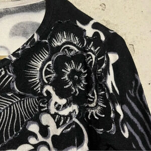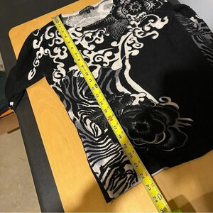 Pierri New York Womens Black White Floral Beaded Long Sleeve Sweater Size S