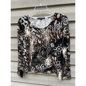 Pierri New York Women’s Sweater Animal Cheetah Print Sequins Y2K Mobwife Size S