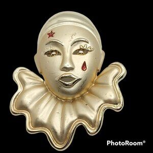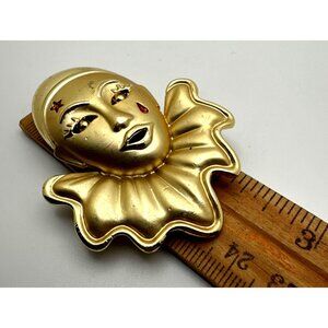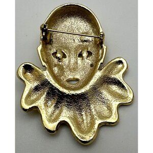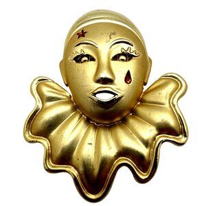 Pierrot Harlequin Clown Pin Vintage Gold Tone Retro Drama Theatrical Cosplay