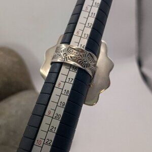 Pietersite Turquoise Cluster Ring Size 7 Statement Wide Hand Stamped Band