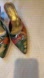 Step out in style with these vibrant slip-on shoes. Featuring a unique blend of green, orange, and brown hues, these shoes are perfect for adding a pop of color to any outfit. The elegant design and comfortable fit make them a must-have for any wardrobe. Marked size 37 (European sizes) US size 7.5.