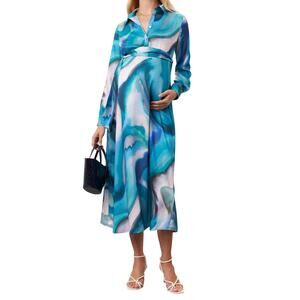 Pietro Brunelli Maternity Watercolor Anne Dress in Multi Blue, Size M