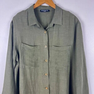 Pietro Brunelli Oversized Linen Blend Button Up Shirt Olive Green Sz S Lagenlook