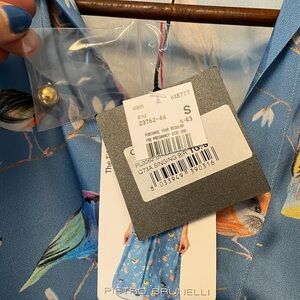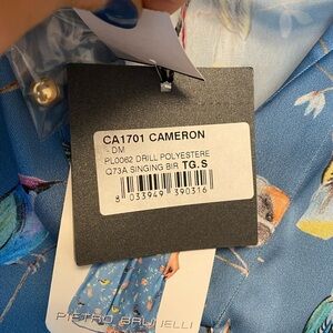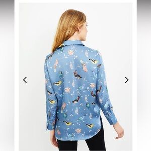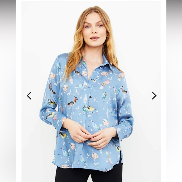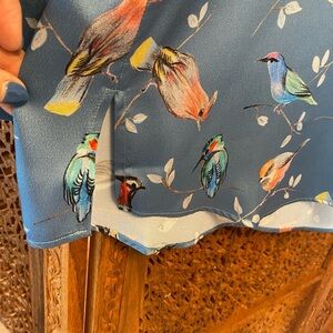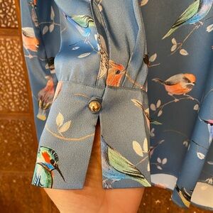 Beautiful singing bird tunic, long sleeves with gold button at cuff.