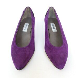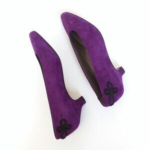 Pietro Pumps Purple Genuine Suede Italian Point-toe Kitten Heel Frog Braid