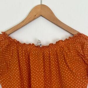 Pietrogrande Burnt Orange Ruffled Polka Dot Boho Blouse Top