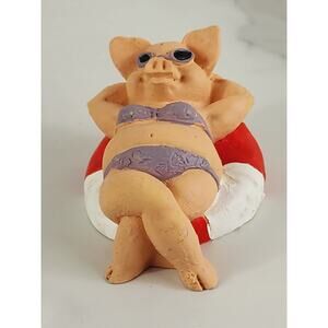Pig In Bikini On The Beach Figurine Piglet Piggy Resin 3" Year 90s Pig Lover