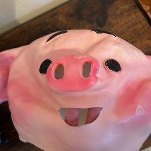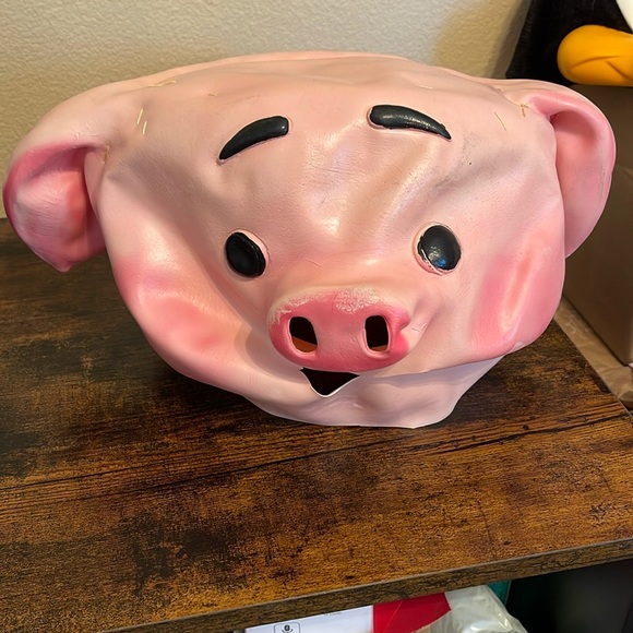 Pig Mask has been altered with padding to make it fuller. Please see all pictures for flaws and stitching from padding.