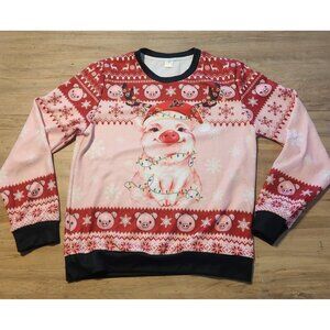 Pig Ugly Christmas Sweater Pig Lover Happy Holiday Party Sweater Unisex Large