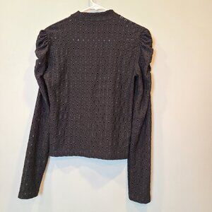 Pigalle Blouse Eyelet Lace Black Long Sleeve Top Womens Small Puff Sleeve