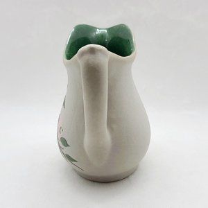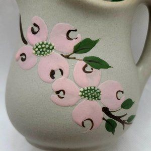 Pigeon Forge Pottery small hand made pitcher with pink dogwood design, inside is green speckled. Great condition. Measures 4.5 inches tall x 4.5 x 3 inches wide.