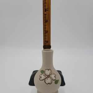 Pigeon Forge Pottery Tenn. 3.5" Beige With Embossed White Flower Miniature Vase
