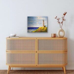 Pigeon Point Lighthouse stands proudly on a cliff along the central California coast, about 50 miles south of San Francisco. At 115 feet tall, it is one of the tallest lighthouses in the United States and has been guiding ships safely since 1872. This painting, created with acrylic on a 16 x 20 gallery-wrapped canvas, captures the beauty and history of this important landmark, showcasing its majestic presence against the backdrop of the vibrant ocean landscape.