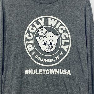 Piggly Wiggly Long Sleeve T Shirt Large Gray & White # Muletown USA Columbia TN
