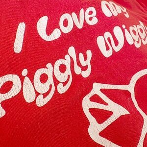 Perfectly broken in (see photos for cracking in ink) for that vintage look and feel. This Piggly Wiggly grocery store tee hails from Monteagle, Tennessee, as visible on the front side of the shirt. The back side says, "I love my Piggly Wiggly" with the traditional pig logo.