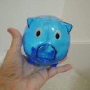 Piggy Bank - Coin Insert + Stopper Blue Transparent Plastic Pig - Bank Promo