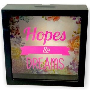 Piggy Bank “ Hope & Dreams “ Freestanding Square Floral Clear View Front