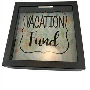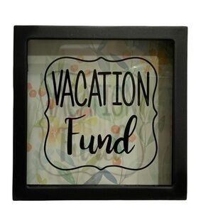 Piggy Bank Vacation Fund Novelty Bank Wood Square 5.75”X 5.75”