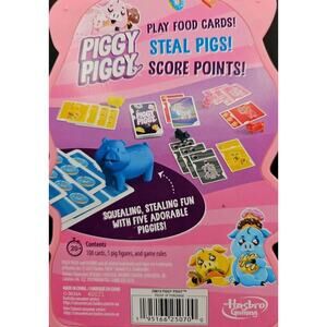 The "Piggy Piggy" card game is a fun family game for ages 7 and up, with a minimum of 2 players. The game type is a family game and the theme is pigs. The game title is "Piggy Piggy" and the manufacturer recommended age is 7 years and up. The release date is January 15, 2024. The item model number is F8819 and the type is cards.