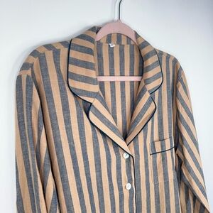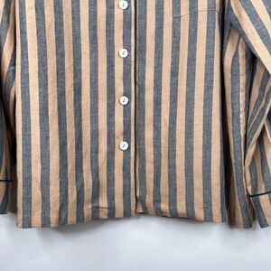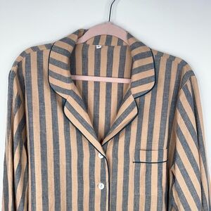 Piglet In Bed Linen Blend Striped Pajamas Set Brown Blue Stripes Classic Size XL