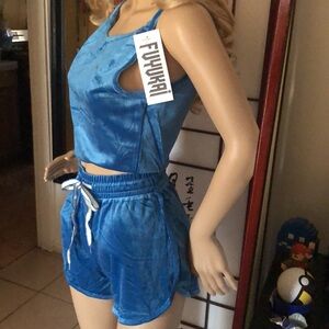 beautiful pajamas in shorts and top , the fabric is velvet, with spring and ribbon at the waist