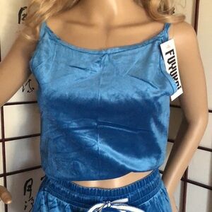 beautiful pajamas in shorts and blouse, the fabric is velvet, with spring and ribbon at the waist