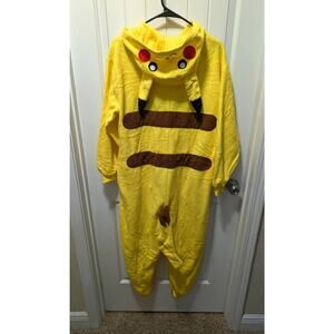 Pikachu One Piece Hooded Adult M Pajamas Button Up Pockets Cosplay Halloween New