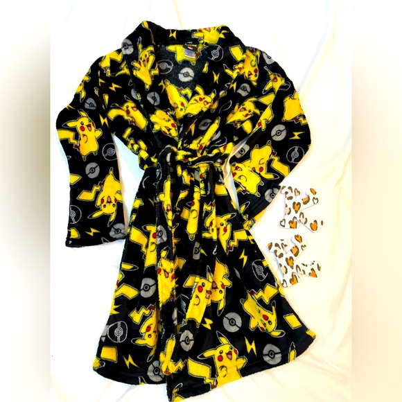 Cozy robe with Pikachu design. Features vibrant yellow and black colors.