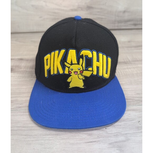 Pikachu Pokemon - 2014 Bioworld Nintendo Script Snapback Hat Cap. Condition is Pre-owned. Shipped with USPS Ground Advantage.