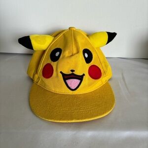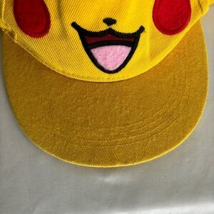Good conditions Pikachu Pokemon hat. No rips or bad odor. Has some stains. Picachu embroidery with ears. snapback. Adjustable in size. Color yellow.. Fabric. Please see pictures for more details.