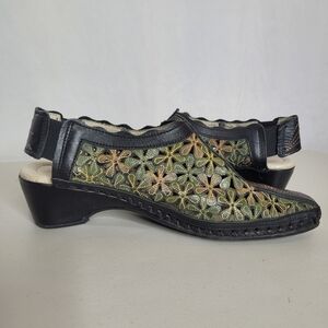 Pikilinos Ramona Floral Leather Elastic Sling-Back Low Heel Mules - Size 39/8.5