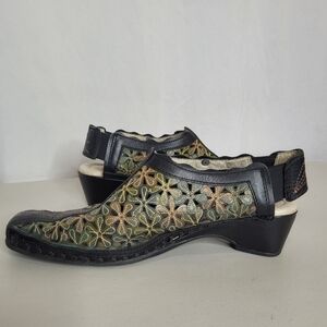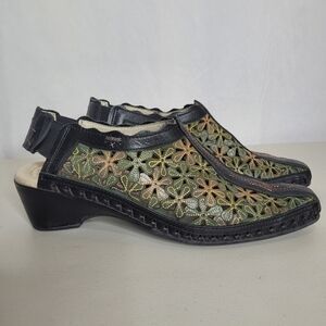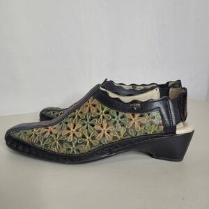 Pikilinos Ramona Floral Leather Elastic Sling-Back Low Heel Mules - Size 39/8.5