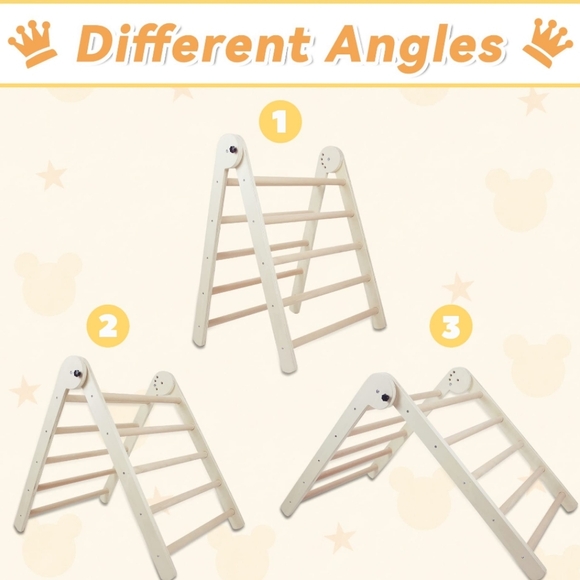 Sturdy wooden climbing triangle. Perfect for indoor play. Cream color adds a natural touch.