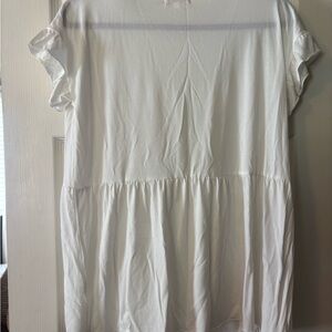 Chic cream top with ruffle sleeves. Soft fabric for everyday wear. Versatile and stylish.