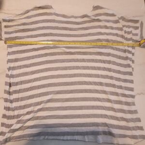 This relaxed, boxy t-shirt from Piko 1988 features a classic gray and white stripe pattern. With its short sleeves and soft, lightweight fabric, it offers a comfortable fit perfect for everyday wear.