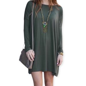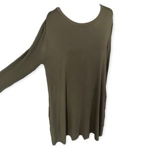 Piko 1988 Women’s Olive Green Long Sleeve Swing Dress size women’s medium — sleeves are more form fitting & dress part is loose & flattering — scoop neck - very great preowned condition & non smoking home + environment