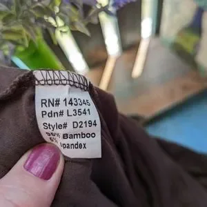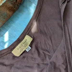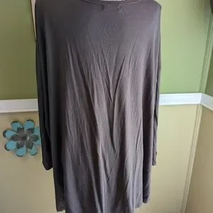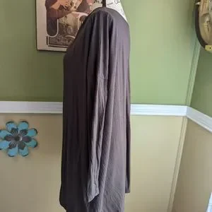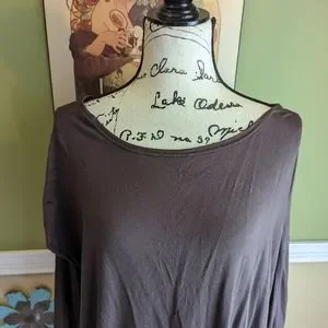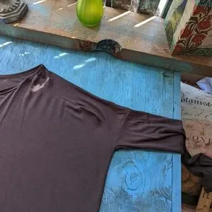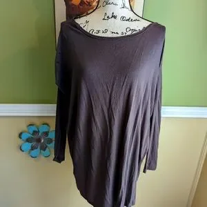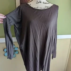 Pre owned in EUC brown stretchy relaxed fit top. Small. Made large except sleeves. Organic material.