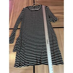 Piko Long Sleeve Tiny Stripe Swing Dress - Heather/Black size medium