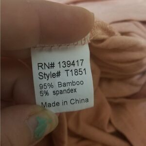 Size M, peach color longsleeve, rounded neckline, 95% bamboo 5% spandex, excellent condition.