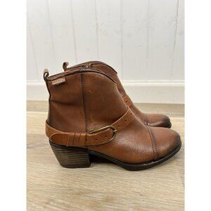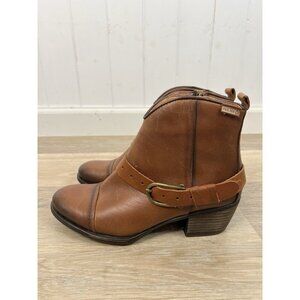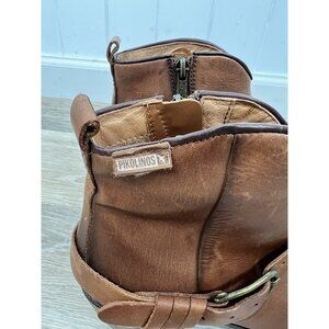 Pikolinos Balta Boots Womens 38 Brown Leather Zip Western Buckle Ankle 7.5-8