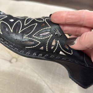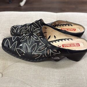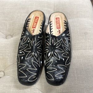 Pikolinos Black Leather Cut Out Embroidered Slip On Mule Size 37