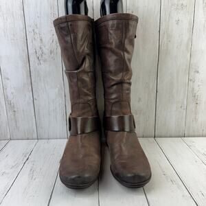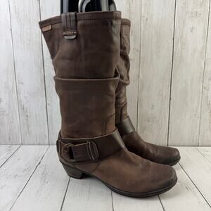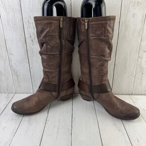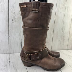 Pikolinos Brown Leather Brujas Mid-Calf Slouchy Boots Side Zip Buckle Size 8.5-9