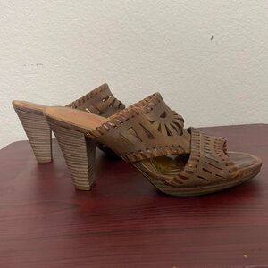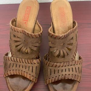 Pikolinos Brown Leather Cutout Open Toe Chunky Heel Slide Sandals Size 37 / US 7