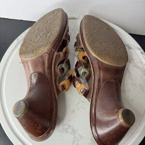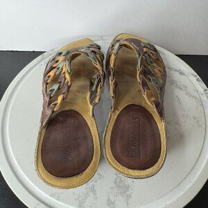 Pikolinos Brown Leather Embroidered Slip-On Slide Sandals Cut-Outs Size 37 GUC