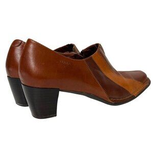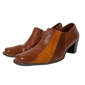 Pikolinos Brown Leather Heeled Shoes Booties Patchwork Side Zip Size 39- US 8.5