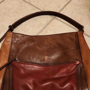 Pikolinos Brown/Garnet Tricolored Leather Cuero Hobo Handbag