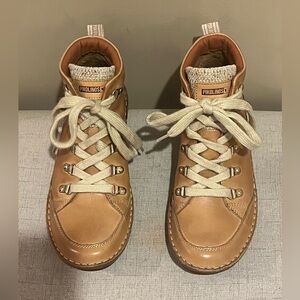 Pikolinos Cazorla Almond Leather Lace-Up Boots, size 38