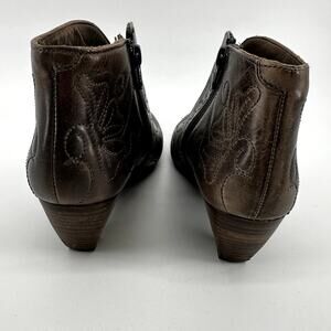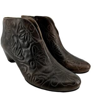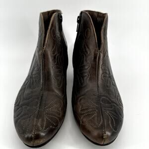 Pikolinos Embroidered Ankle Boots Heeled Slip On Almond Toe Brown EU 38 US 7.5