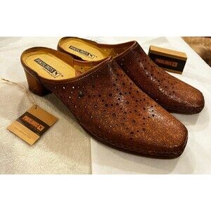 Pikolinos Flamingo Brown Gomera Embossed Leather Clog Mules NEW size 10.5-11 41