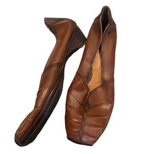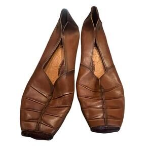 Pikolinos Gandia Cuero Pleated Square Toed Leather Slip On Low Heels Brown 36